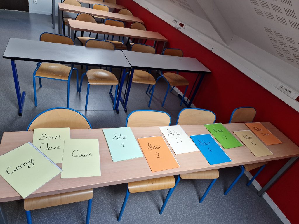 Les ateliers sont pensés pour être manipulés en autonomie, avec du matériel rangé par pochettes, des cartes, des documents à lire, des calculs à faire… Chaque atelier peut être refait plusieurs fois, seul ou en binôme, avec une feuille de suivi pour garder une trace des apprentissages.