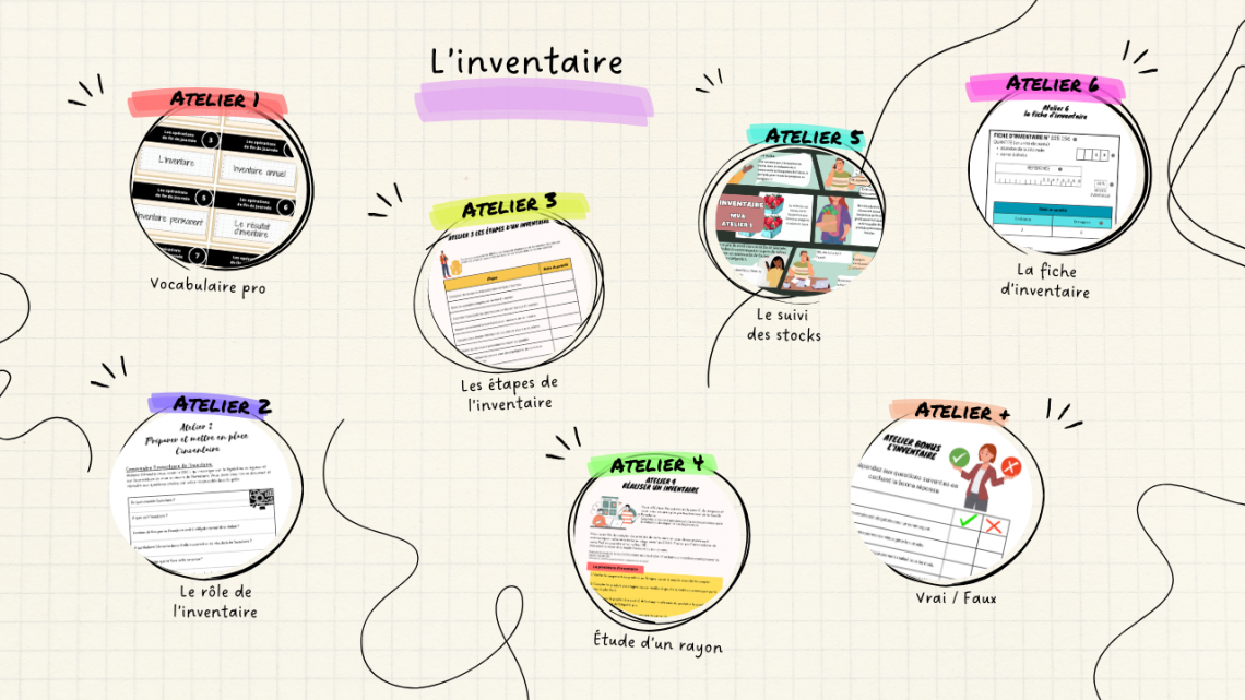 L’inventaire fait partie des notions qui font souvent souffler les CAP EPC : chiffres, écarts, stocks, démarque… et pourtant, c’est du 100 % concret pour leur futur métier. Pour éviter le cours “trop théorique” et aider les apprenants à comprendre vraiment ce qu’ils font, j’ai créé un pack complet “L’inventaire” spécial CAP EPC, basé sur des ateliers autonomes, des supports prêts à imprimer et des outils de suivi pour le professeur. Ce pack est pensé pour les formateurs en commerce qui veulent gagner du temps tout en proposant des activités ludiques mais exigeantes. Pour qui est ce pack “L’inventaire” ? Ce pack est conçu pour les : Il convient aussi…