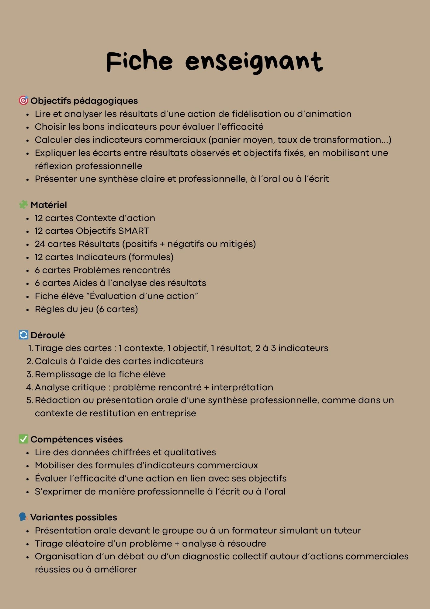 ✅ Une fiche enseignant avec déroulé, objectifs, variantes