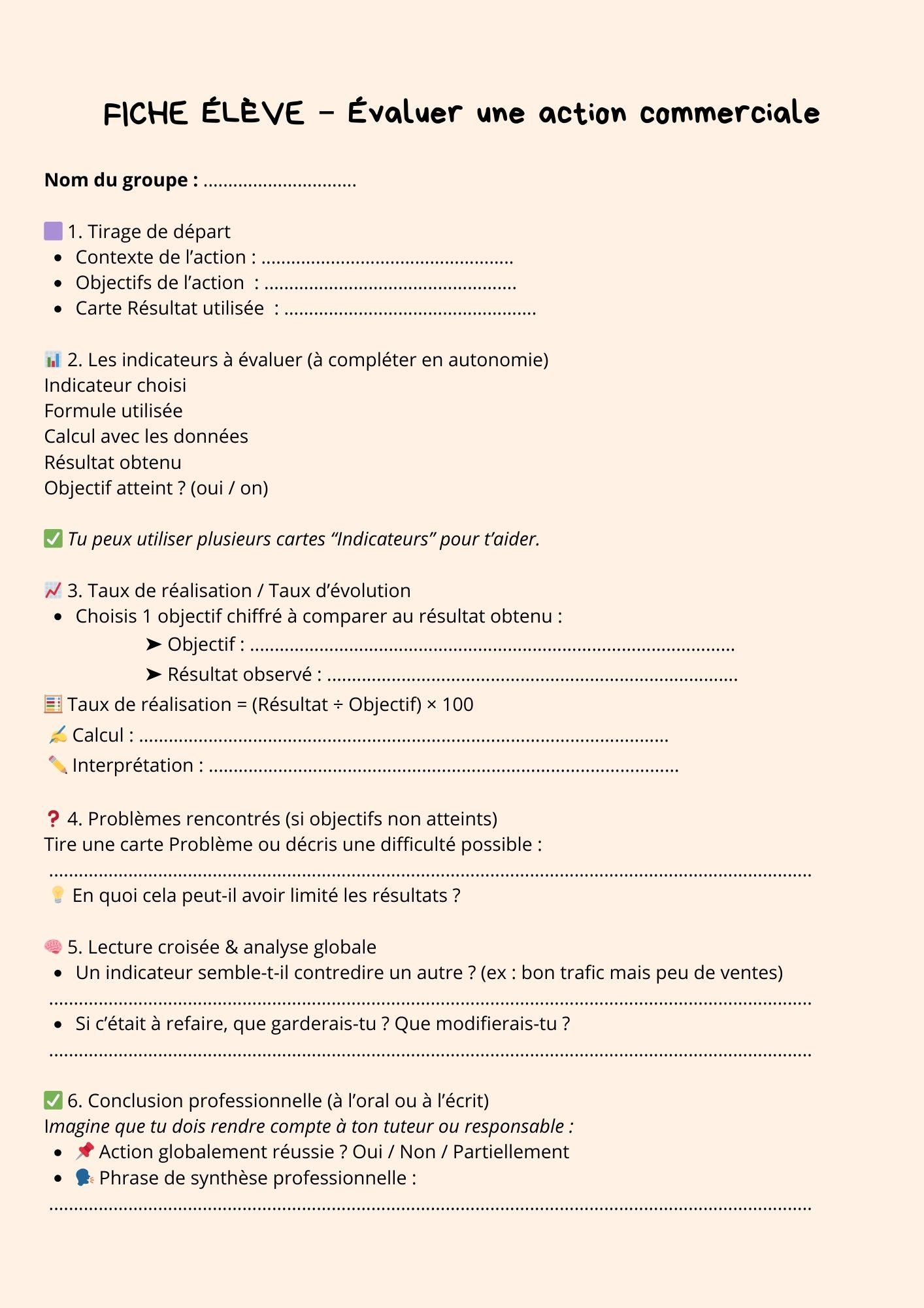 ✅ Une fiche élève complète avec grille de calculs, interprétation et synthèse