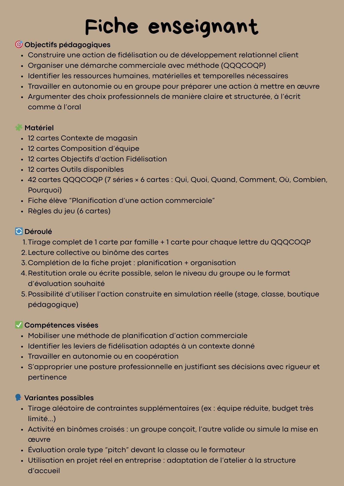 ✅ Une fiche enseignant avec déroulé, objectifs et variantes