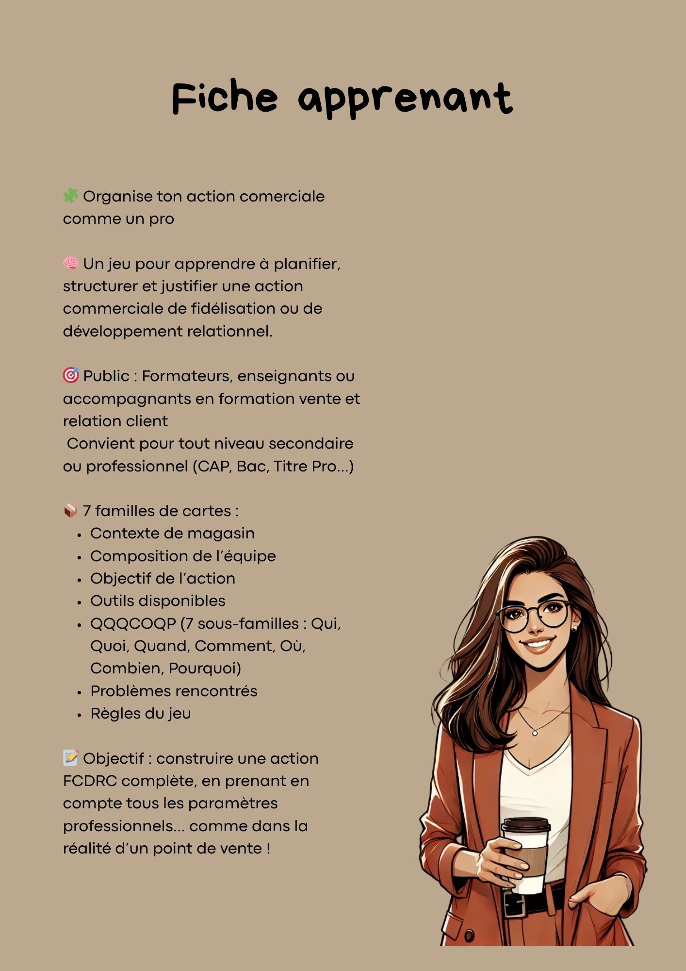 Un outil idéal pour tout professionnel souhaitant entraîner ses apprenants à planifier une action commerciale ou de fidélisation, dans un cadre pratique et concret.