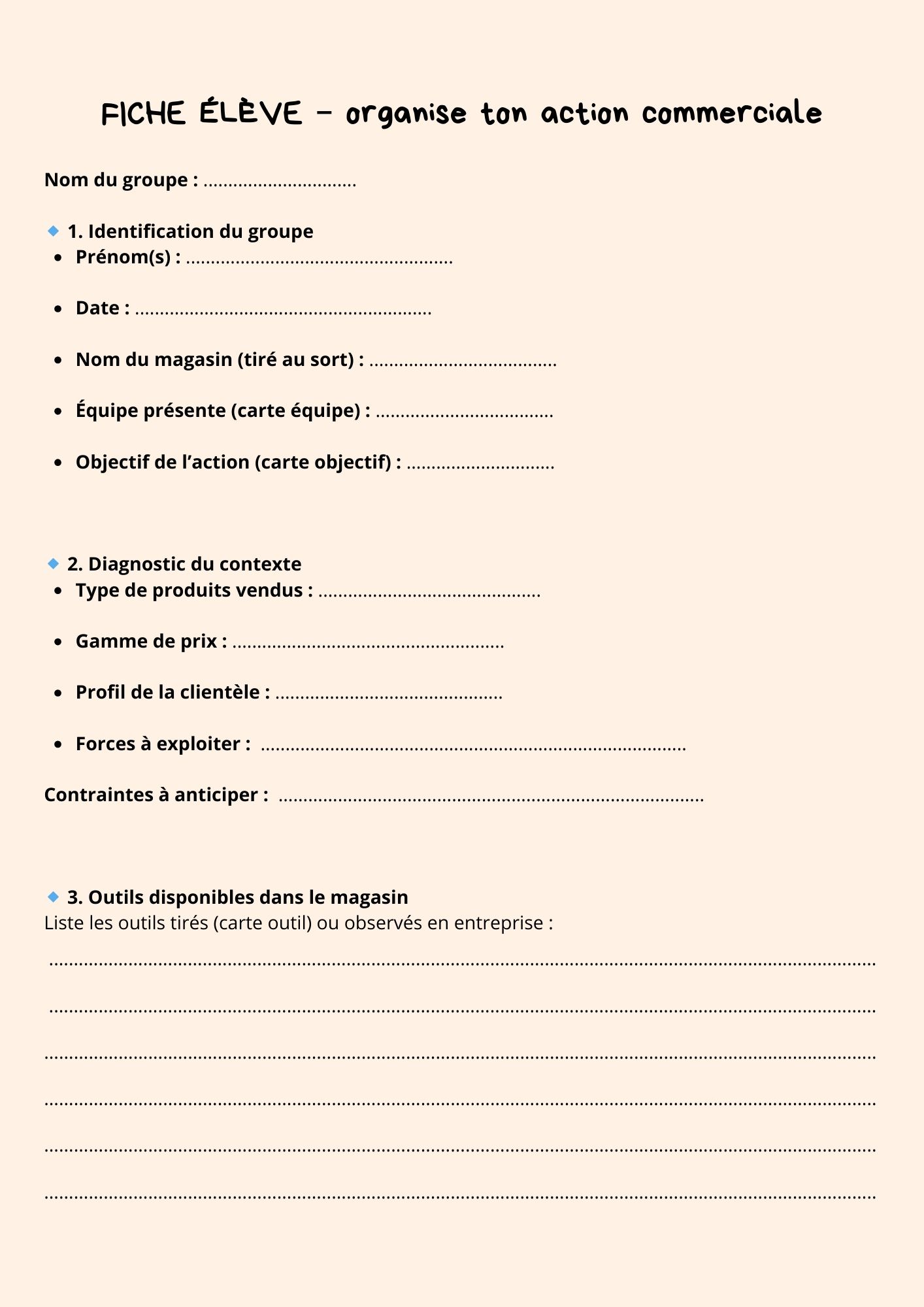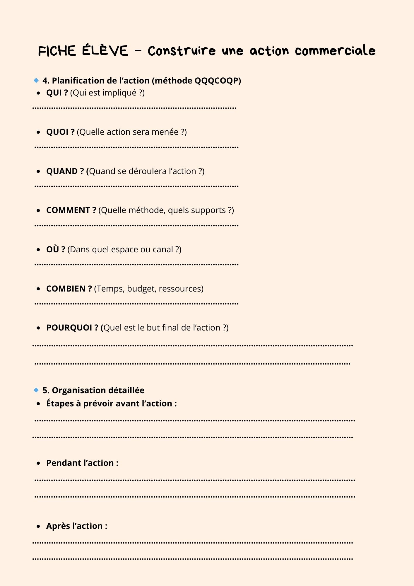 Organise ton action commerciale – Jeu pédagogique à imprimer